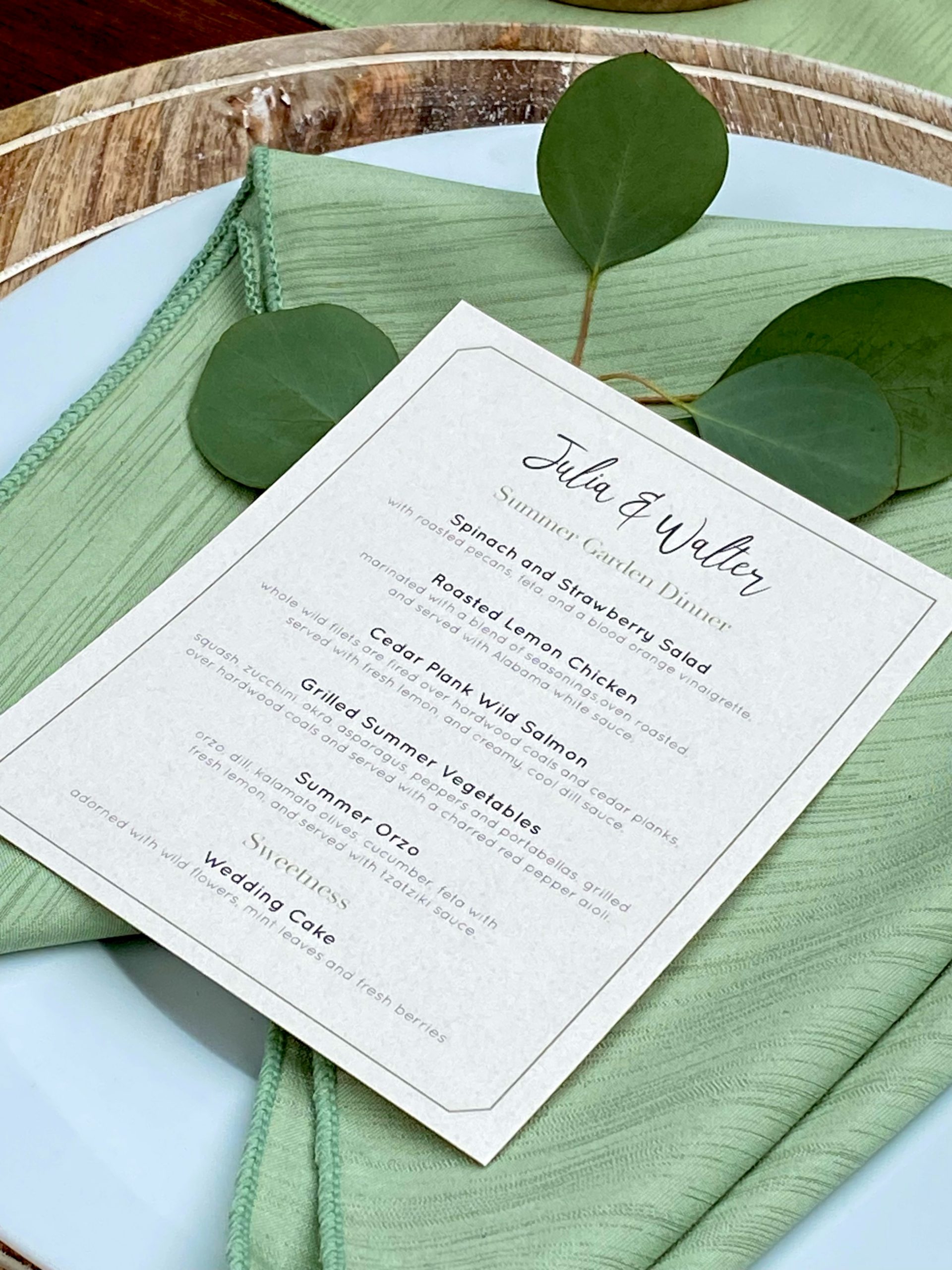 We work closely with couples to design menus that reflect their tastes and the style of their celebration.